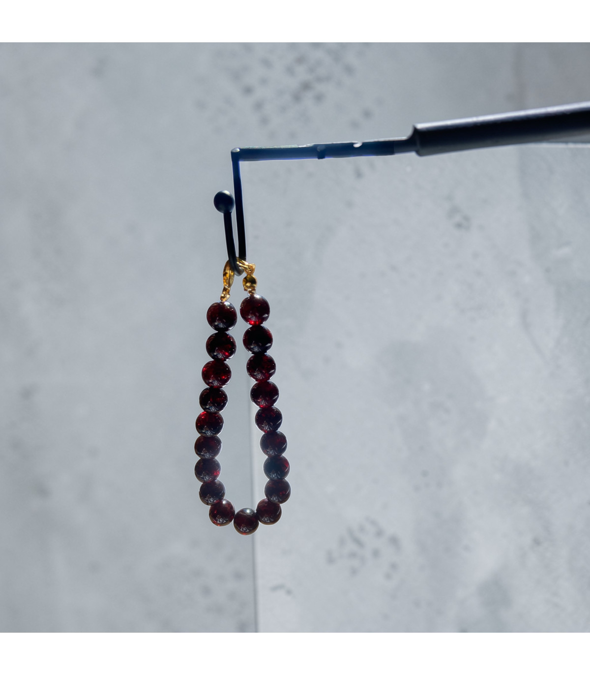 Le Grenat de Madagascar (souvent de la variété Almandin) est célèbre pour sa couleur rouge sang profond, tirant parfois sur le bordeaux ou le brun chocolat. C'est une pierre dense, lourde et puissante.