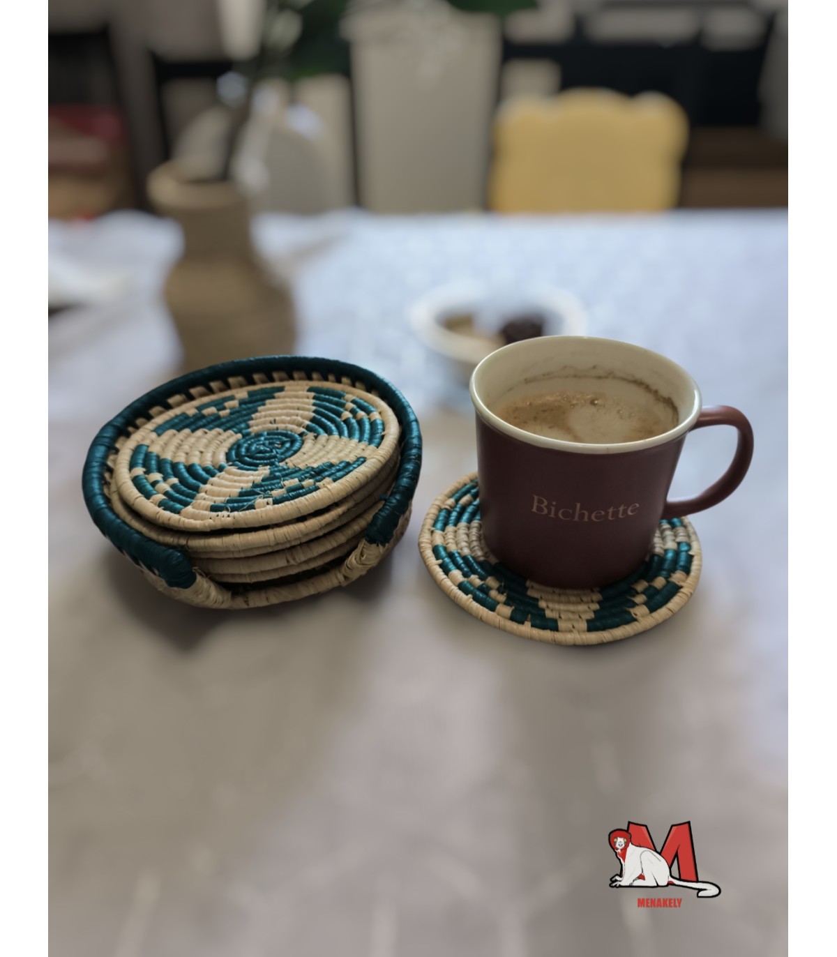 🌿 Sous-verres “Éclats de Nature” – Raphia Fait Main, Couleurs Nature & Verte