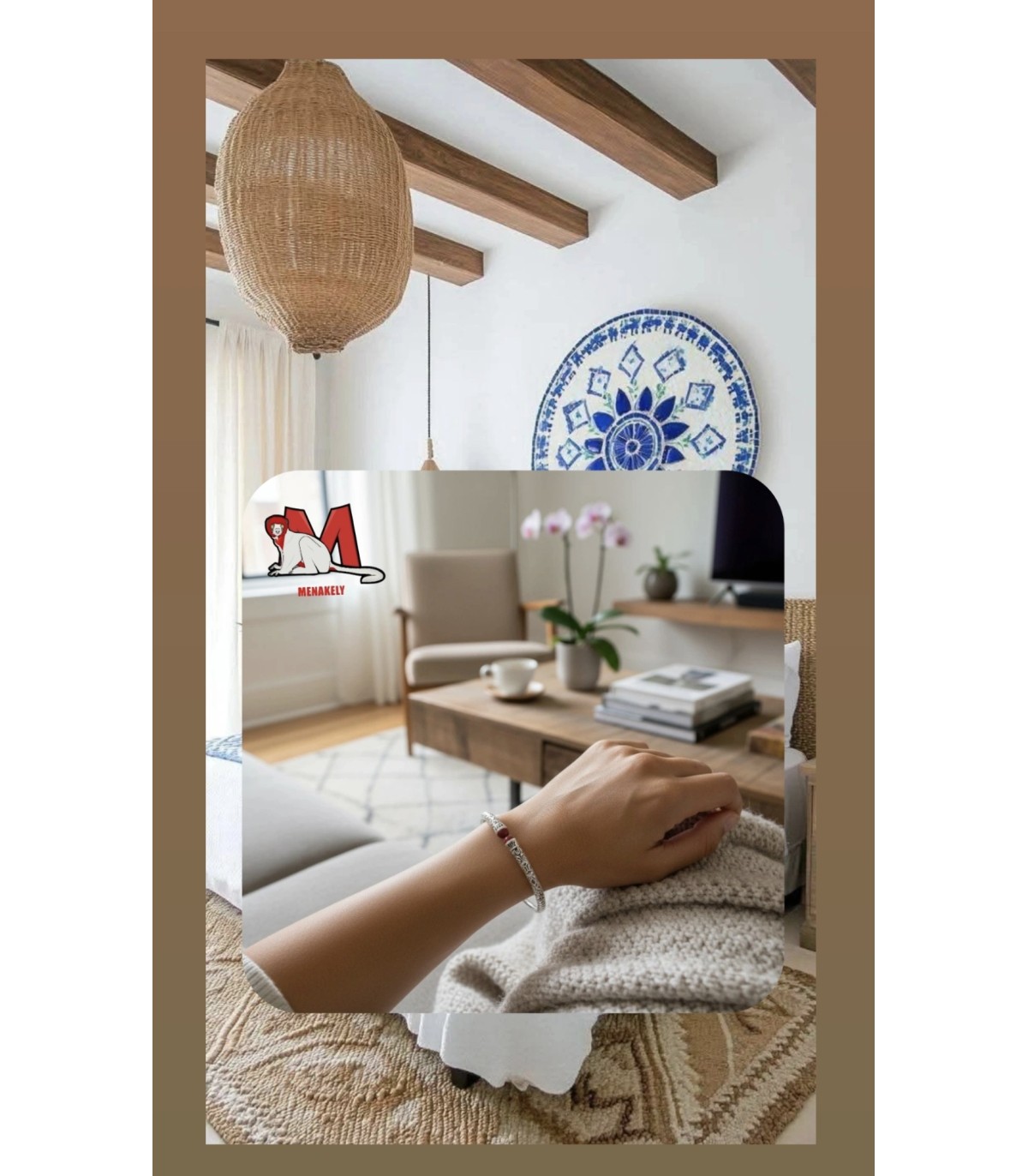 Ce bracelet est façonné à la main, il est fait d'argent, orné de pierre cornaline.