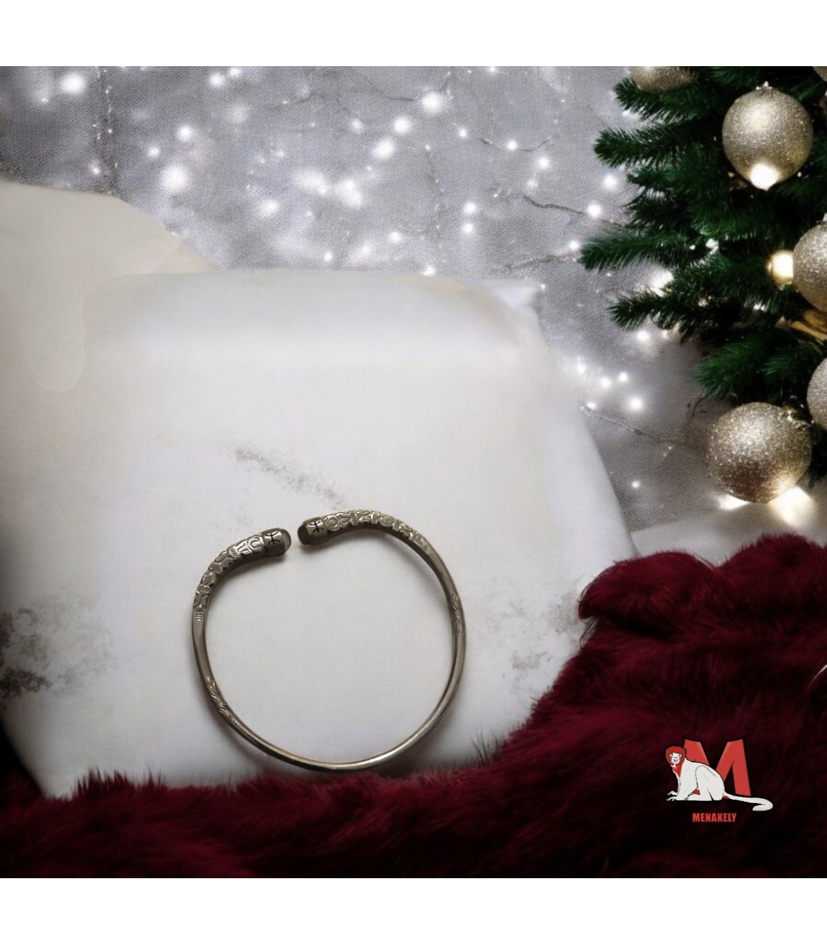 Le vangovango a une forme épurée mais puissante : c’est un jonc massif en argent.