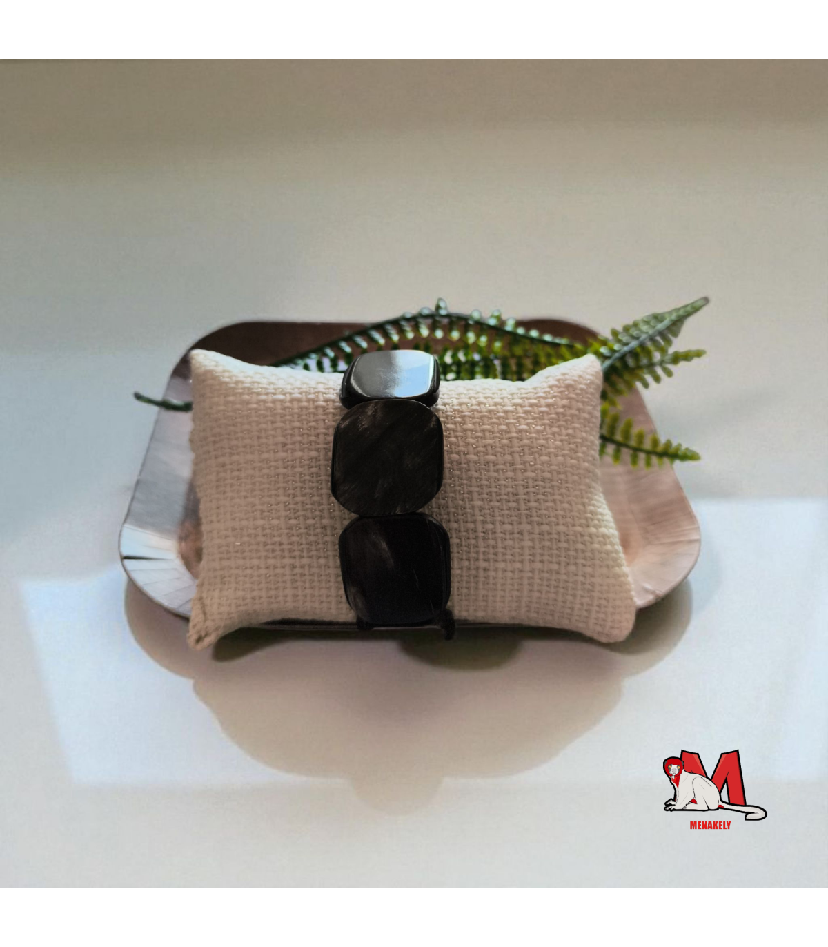 Découvrez ce bracelet élastique en perles de corne de zébu, un bijou artisanal haut de gamme entièrement façonné à la main à Madagascar. Composé de perles carrées soigneusement polies, il révèle des nuances naturelles uniques : du caramel au brun profond, en passant par des teintes fumées. Chaque bracelet est différent, car chaque corne possède sa propre couleur et son propre motif — c’est ce qui en fait toute la beauté.