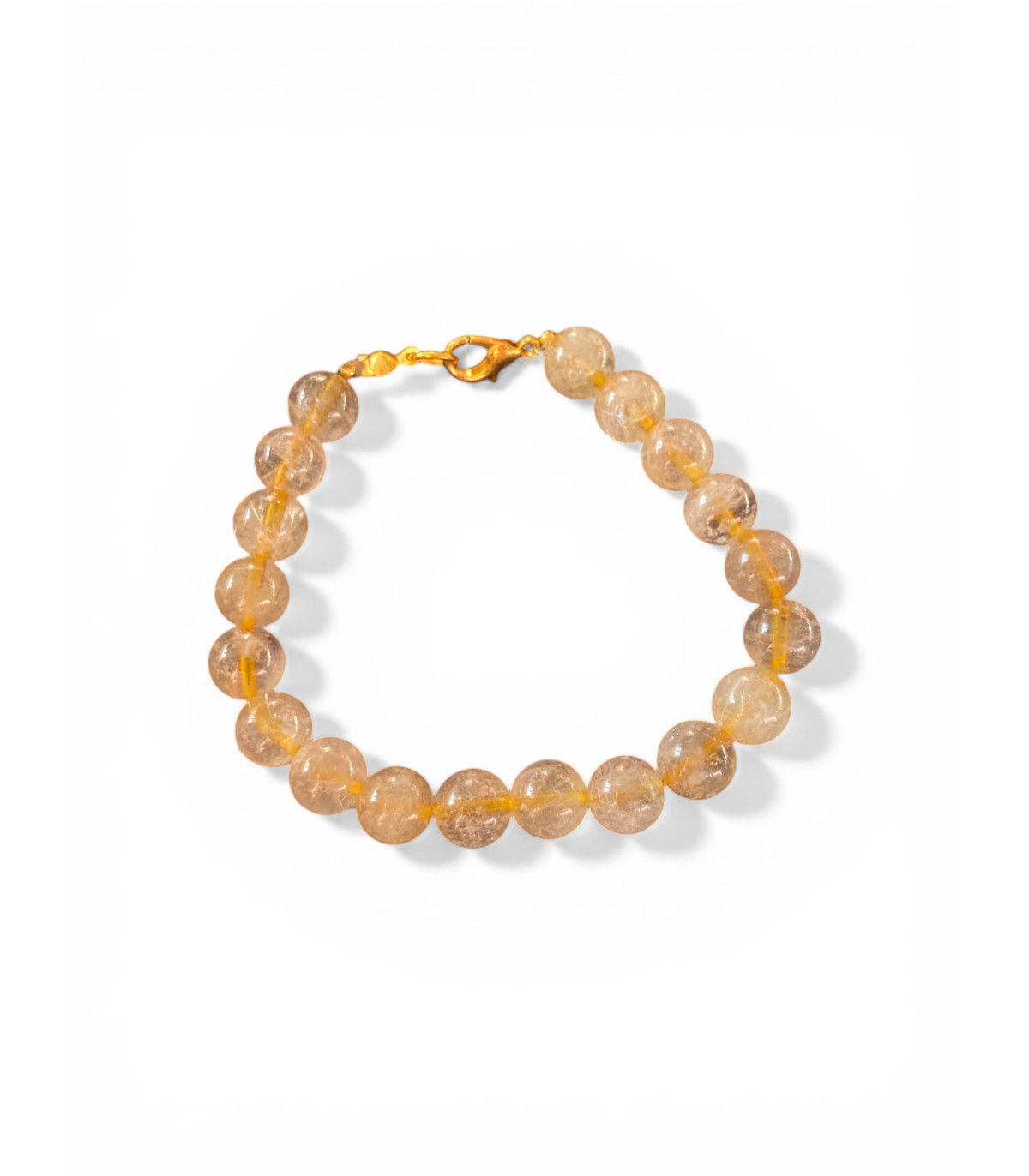 Le Quartz Cheveux d'Or est un Cristal de Roche d'une transparence parfaite, à l'intérieur duquel se sont cristallisées de fines aiguilles d'Oxyde de Titane (Rutile). À Madagascar, ces inclusions prennent une teinte dorée éclatante, ressemblant à des rayons de soleil capturés dans la glace.