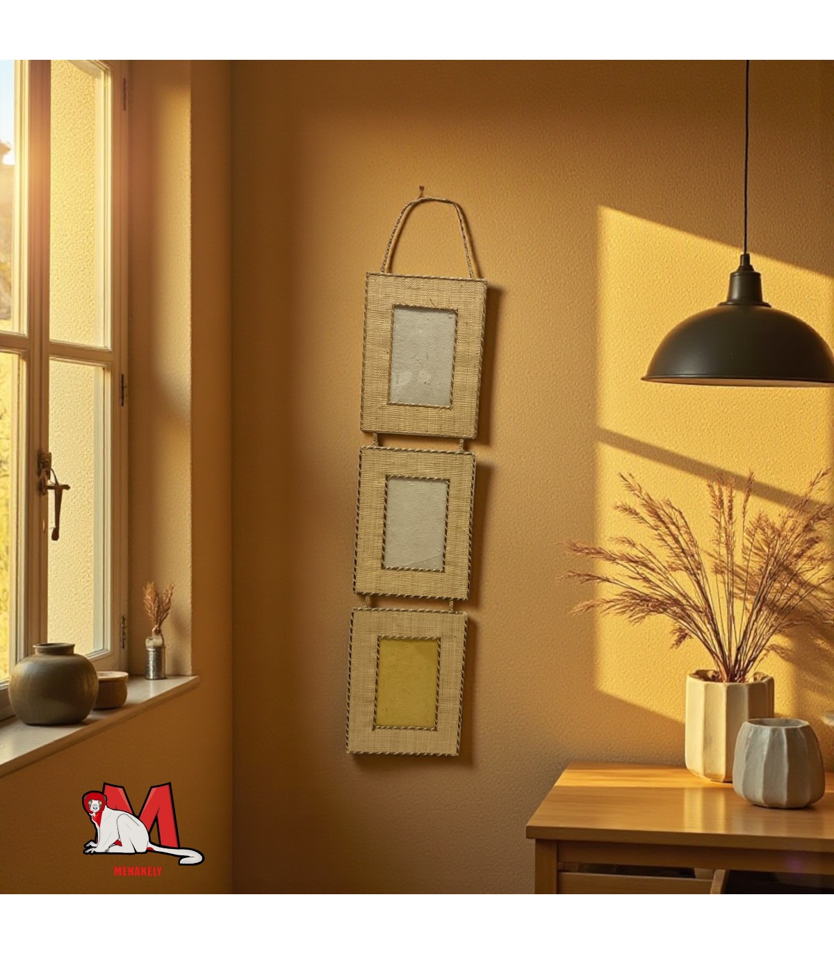 Ce cadre photo en raphia à suspendre allie authenticité et finesse artisanale. Conçu à la main à Madagascar, il met en valeur un tressage précis et naturel, caractéristique du savoir-faire malgache. Pensé pour accueillir trois photos de 9 × 13 cm, il offre une présentation harmonieuse et chaleureuse de vos souvenirs. Sa structure en raphia haut de gamme apporte une touche exotique et raffinée à votre décoration intérieure. Unique et éthique, chaque pièce reflète l’art du travail manuel et la beauté des matières naturelles.