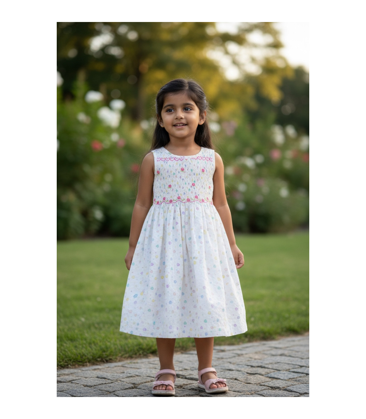 Robe à smocks brodée à la main artisanat de Madagascar, 100% coton